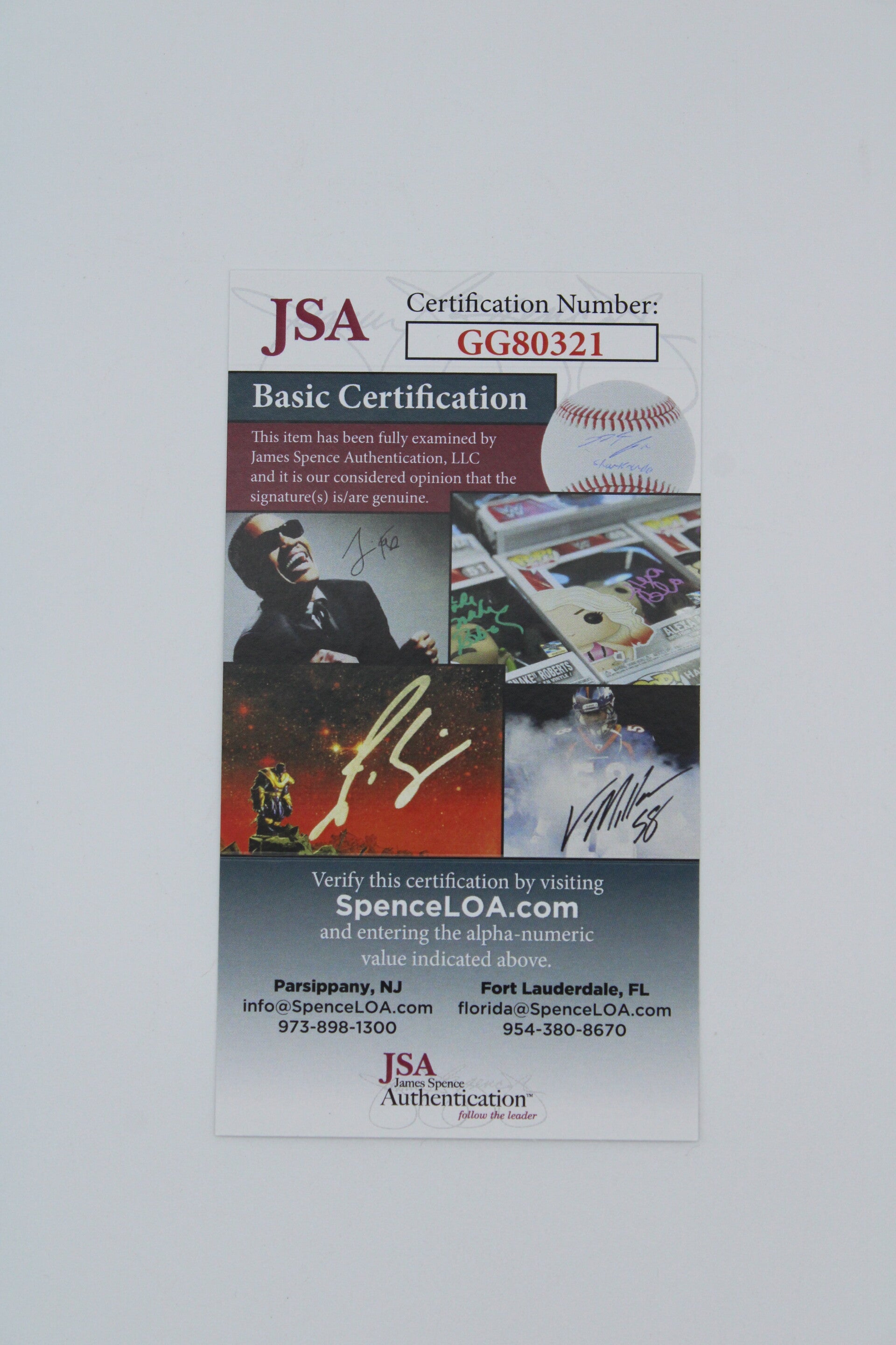 It has a certificate of authenticity from JSA (GG80321).
