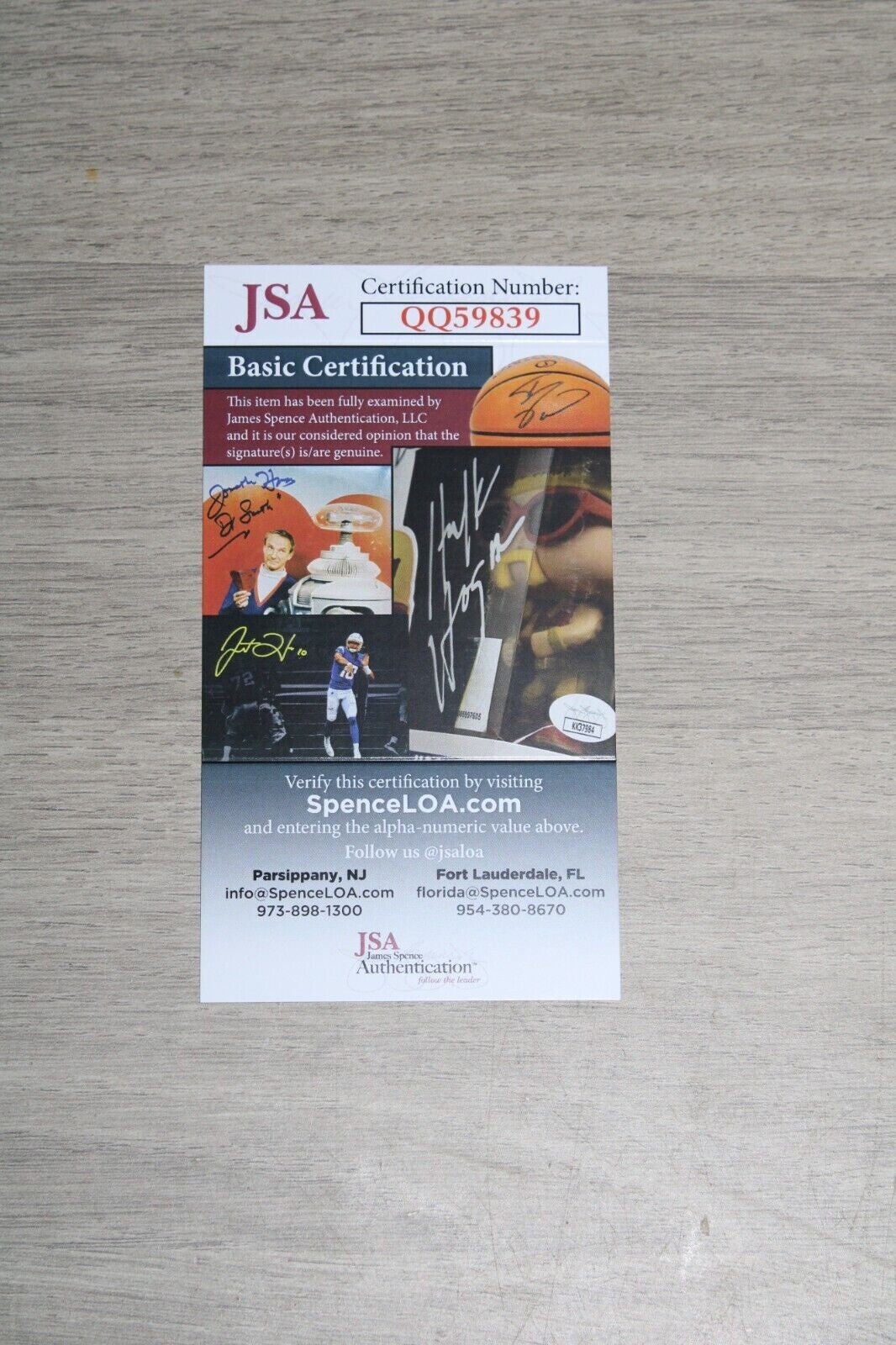 It has a certificate of authenticity sticker from JSA (QQ59839).
