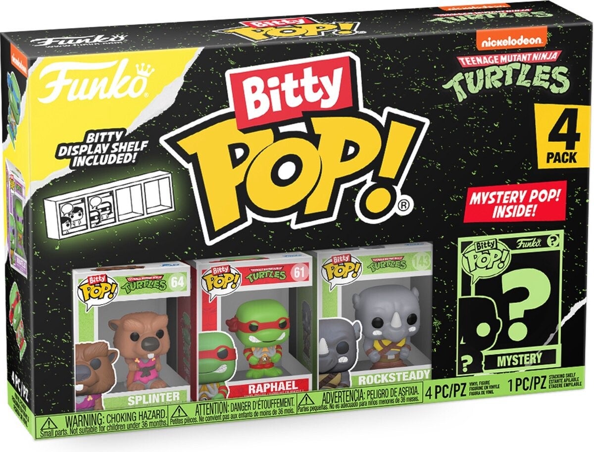 Teenage Mutant Ninja Turtles (TMNT):- Splinter- Raphael- Rocksteady- Mystery Figuur!