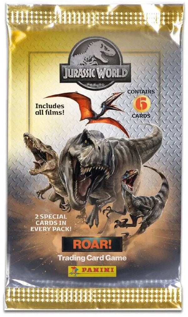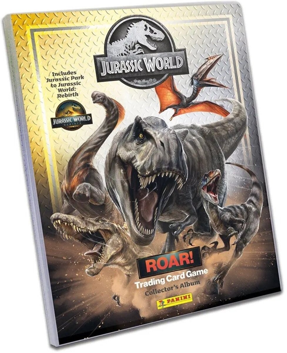 Jurassic World Roar! Trading Cards Starter Set:- 1 verzamelalbum- 3 packs. Elk pack heeft 6 trading cards.- 1 limited edtion trading card