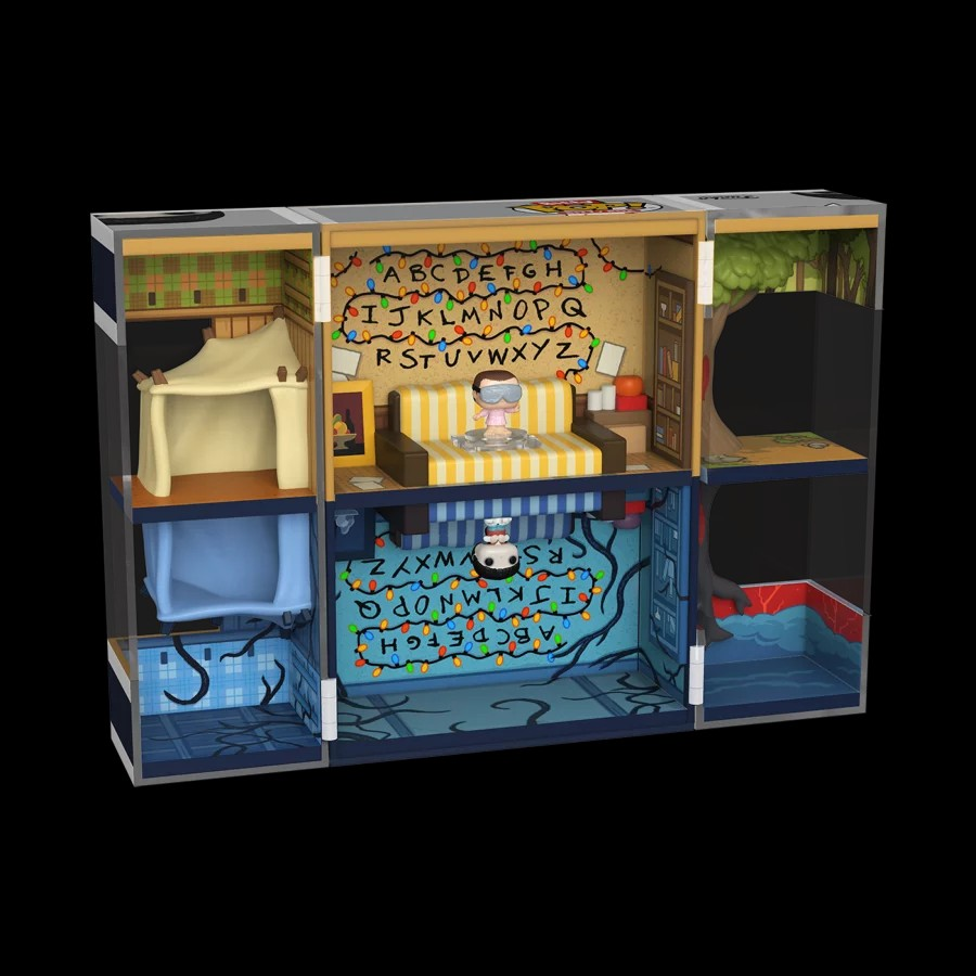 Byers House met figuurtjes Upside Down Will en Eleven with Goggles.Stranger Things